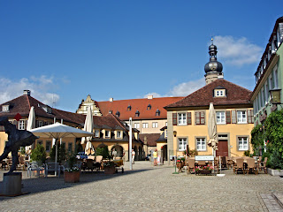 el pueblo es una monada, como todos los demás, y no dejamos de admirar continuamente sus fachadas... hasta llegar por supuesto a la plaza del mercado o markplatz,