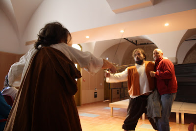 La visita al patio era teatralizada, y resultó de lo más divertida gracias a los actores que nos acompañaron mientras nos mostraban el edificio. Se hacían pasar por un matrimonio fantasma, que había vivido en el corral de comedias en otro siglo, y la verdad que hacían un papel la mar de divertido... ella haciendo de marimandona