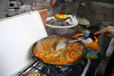 en cuanto acabamos el recorrido previsto, regresamos para comenzar con el aperitivo que se preparó en un periquete...y por supuesto, los gazpachos...